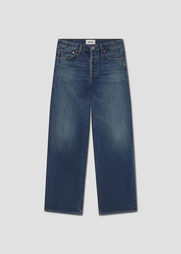 A high-rise wide-leg silhouette, the Ren Jean is designed with a flattering high waist, a relaxed fit through the hips, and a long, easy leg shape that feels both timeless and modern—now offered in a full-length 32-inch inseam for an elongated, polished look. Finished in a dark washed worn-in indigo, it brings subtle depth and a naturally lived-in feel to this structured classic. Crafted from rigid non stretch regenerative cotton denim with a soft hand feel, it delivers all day wearability while maintaining its clean, sculpted form.