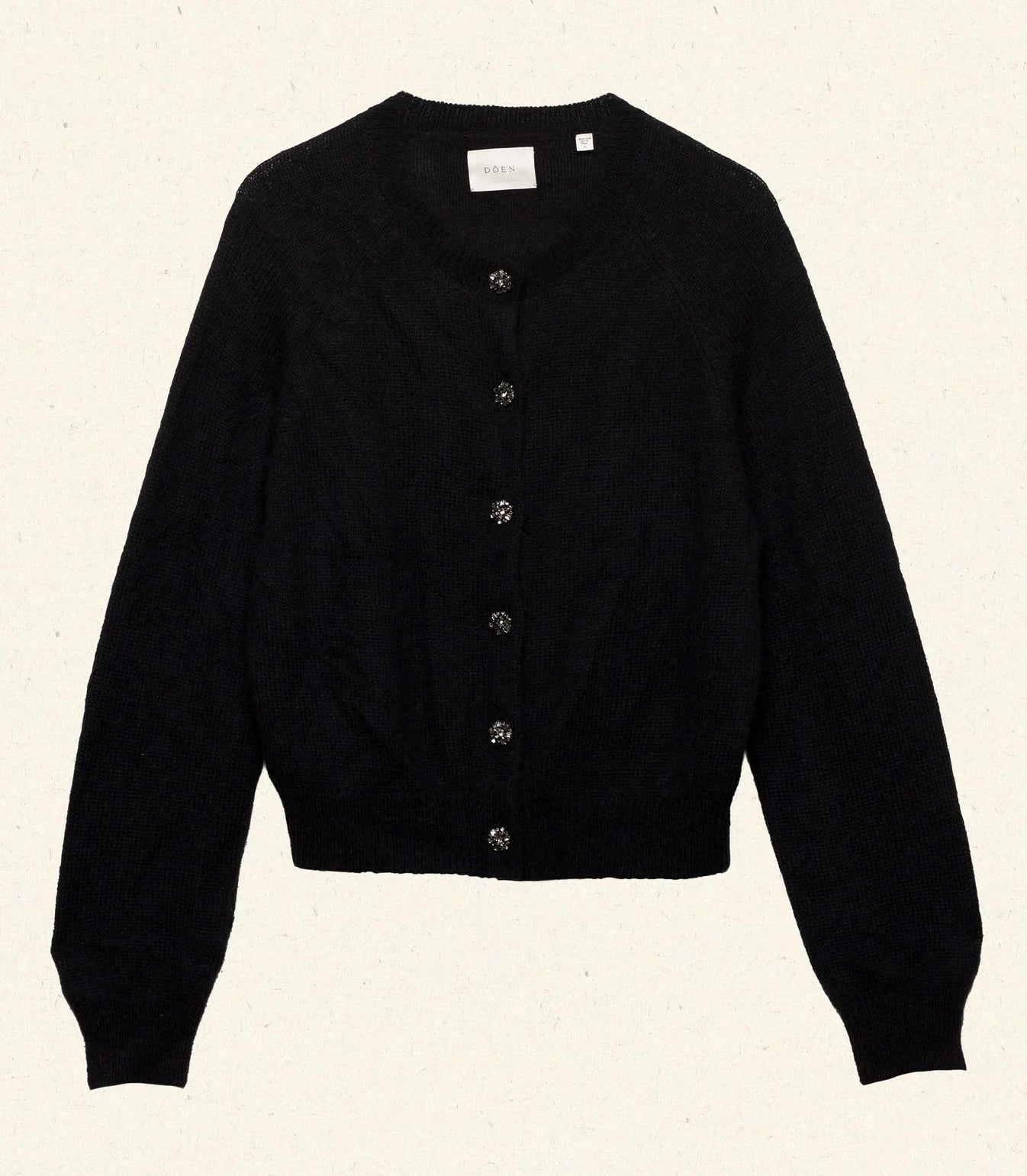 Reimagined for Holiday with rhinestone fleurette buttons, our forever-favorite Petra Cardigan is knitted from a soft blend of superfine alpaca and merino wool, featuring a classic crew neckline, fitted raglan sleeves, and ribbing at the neckline, cuffs, and hem.